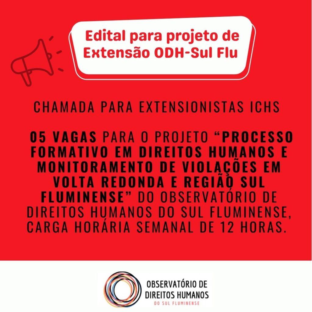 São 5 bolsas de extensão para atuação em direitos humanos no Sul Fluminense, com foco em pesquisa, formação e monitoramento de violações.